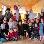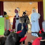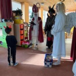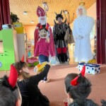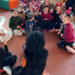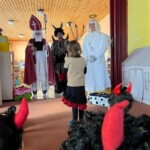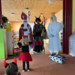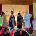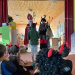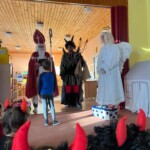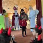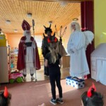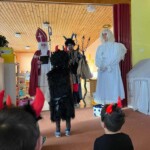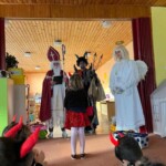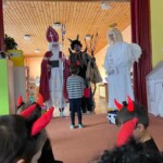 5. 12. se naše školka proměnila v malé peklo. Od ráno chodilo do školky mnoho čertíků a dokonce přišel i jeden andílek. Jako správní pekelníci jsme jezdili na pekelném koni, který se jmenoval „Borůvka“. Dokonce nás navštívili i naši známí kamarádi – MIKULÁŠ, ANDĚL a ČERT. Ti nám přinesli něco dobrého na zub :).